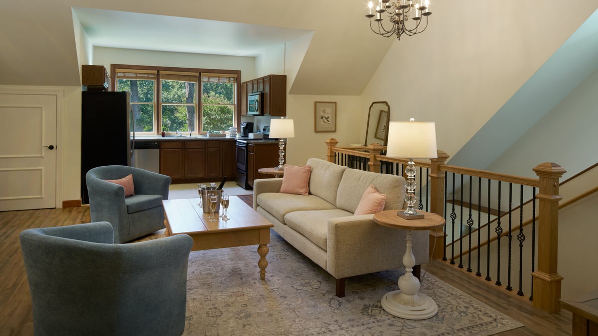 Complementing the Magnolia Lounge, Nate's Cabin provides a sophisticated retreat for our couple and their attendants. This handsomely appointed space combines woodland charm with modern conveniences, offering comfortable seating, refreshment service, and private facilities. The cabin's warm wood tones, thoughtful amenities, and secluded setting provide the ideal environment for pre-ceremony preparations and memorable moments with closest friends.