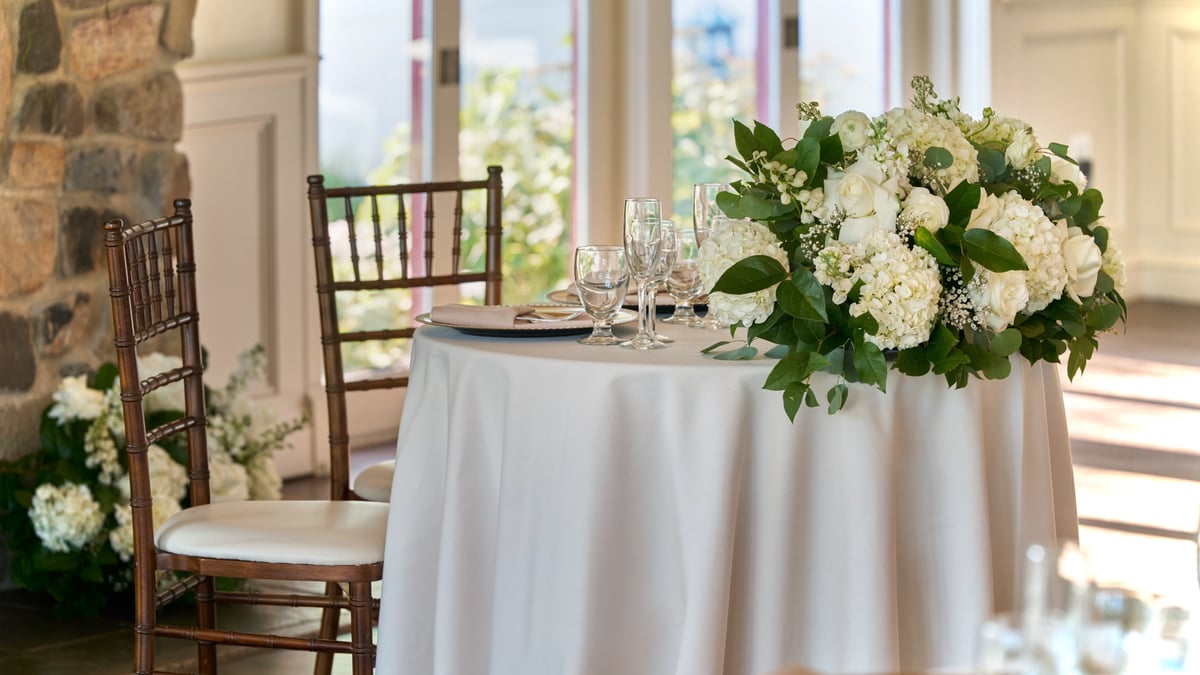 Our pricing is based on four areas. First, you decide on your package level and multiply it by the number of guests. Next, you add the ceremony and venue price, which varies depending on the season and day of the week you're considering. Finally, you'll add your admin fee and state tax. As you can see, we include all the big-ticket items like the venue, the décor, and the catering so your wedding budget can work harder.