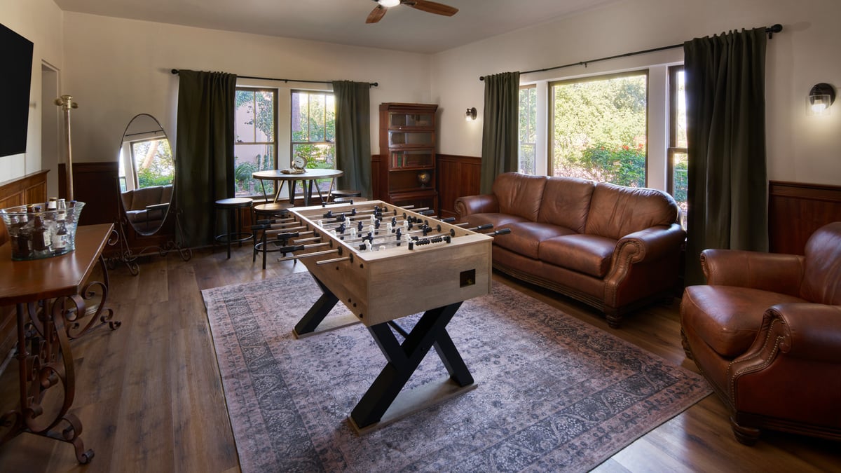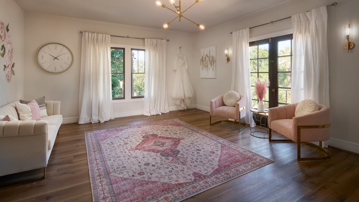 This gorgeous estate was built in 1929 by Walter Strong as a family estate to share with his wife, Blythe. Expense was no object as the owners curated the best of 1920 period features and employed expert architects to create a mansion in the popular Spanish Colonial Revival style. Highpoints of this attention to detail include hand-stamped tiles, timeless décor, ornate fireplaces, a grand staircase, and a stunning balcony for you to view the gardens. The Manor House boasts a glorious grand hall with chandeliers, oversized windows, a private patio area, and two dressing suites. The gorgeous pavilion boasts a cathedral ceiling adorned with iron chandeliers and double French doors, bringing the beauty of the outside indoors. The adjoining courtyard features a cozy fireplace, high-end furnishings, and Spanish revival architecture.