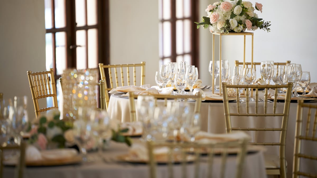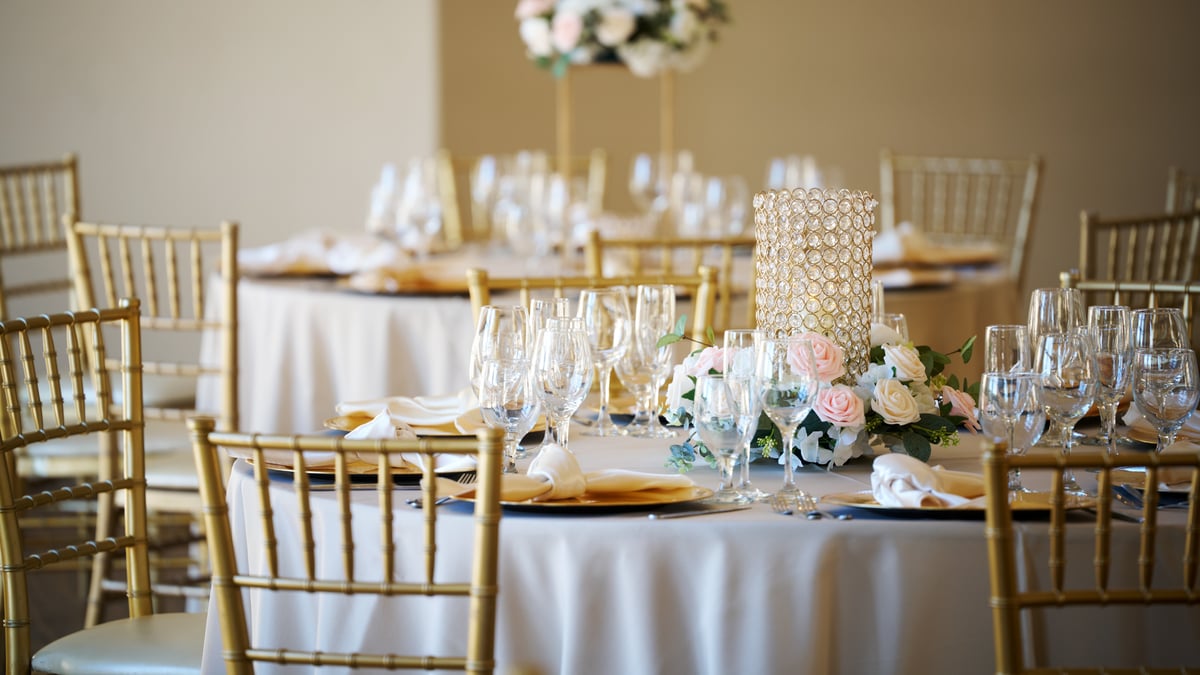 Our pricing is based on four areas. First, you decide on your package level and multiply it by the number of guests. Next, you add the ceremony and venue price, which varies depending on the season and day of the week you're considering. Finally, you'll add your admin fee and state tax. As you can see, we include all the big-ticket items like the venue, the décor, and the catering so your wedding budget can work harder.
