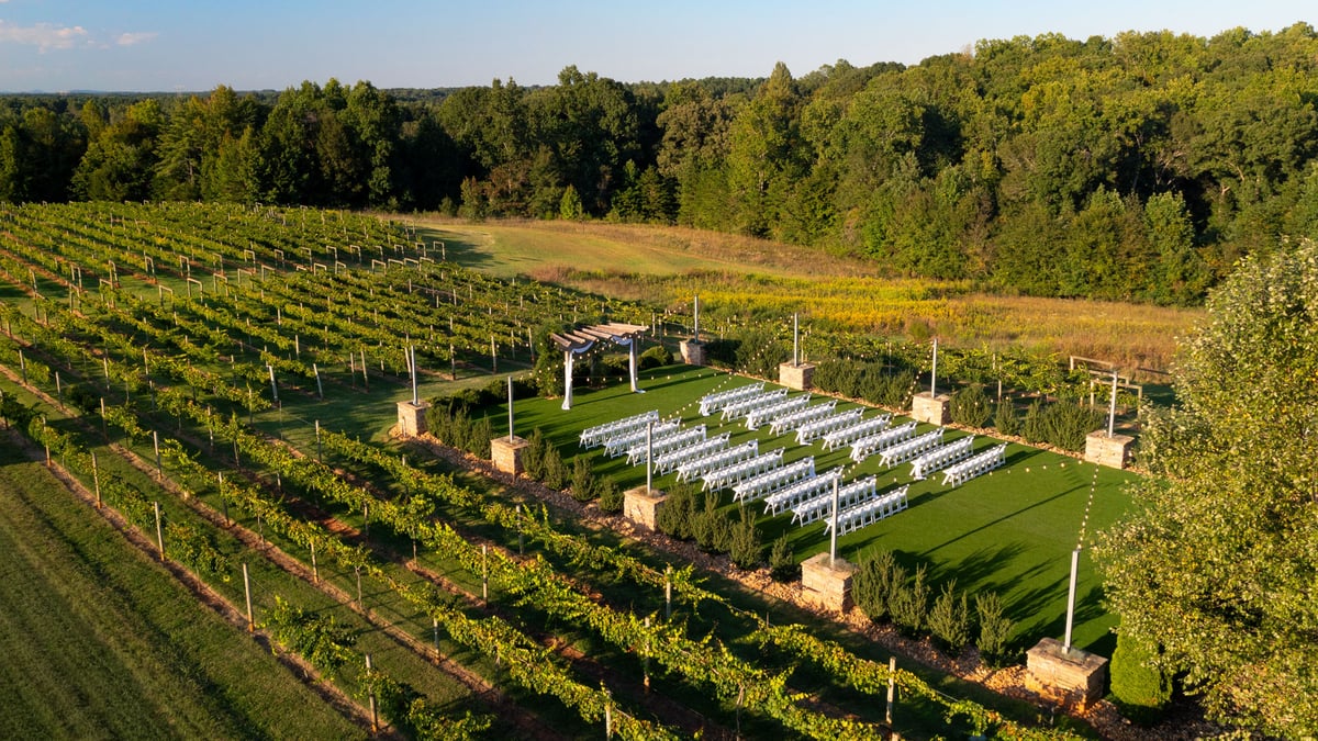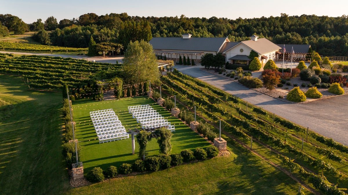 Experience the romance of Spinning Leaf, North Carolina's premier vineyard wedding venue, just outside of Charlotte. This venue combines countryside elegance with modern luxury.