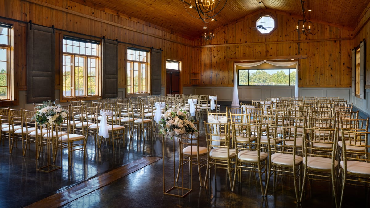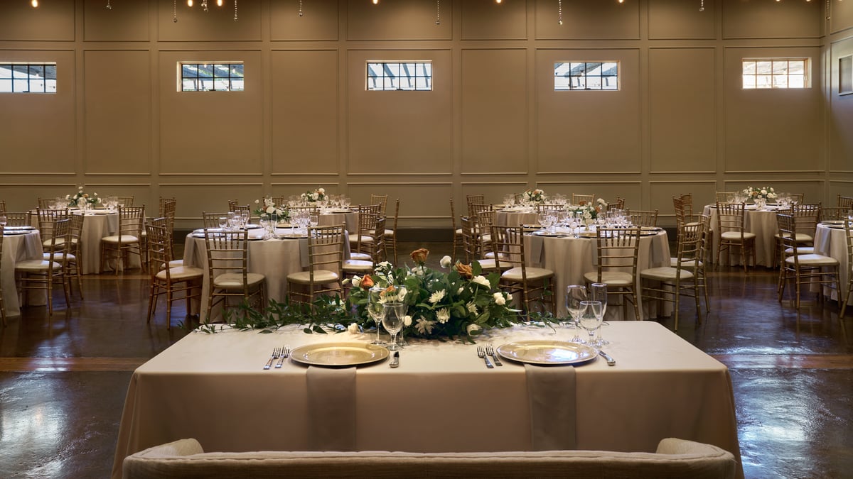 The reception space's neutral palette serves as the ideal canvas for any wedding style, from classic elegance to modern romance. Our signature long tables create an intimate dinner party atmosphere, while round tables offer a traditional reception layout. The space can be transformed to accommodate ceremonies and receptions or serve as a weather backup for outdoor ceremonies.