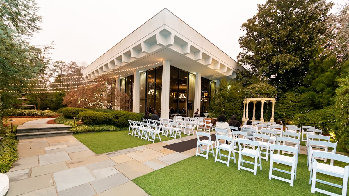 Step into a contemporary garden oasis in downtown Norcross where modern neoclassical design meets enchanting botanical beauty. Featuring a stunning Italian stone gazebo with an iron filigree dome, a secret garden that blooms year-round, and a sleek modern ballroom with soaring two-story windows, The Atrium offers sophisticated elegance with romantic warmth.