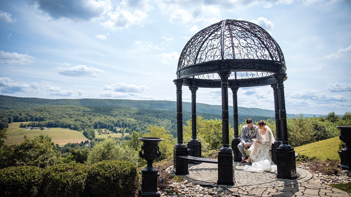 Perched atop 200 acres in the Pocono Mountains, The Stroudsmoor offers four distinct wedding venues on one breathtaking estate. Choose from castle elegance at Terraview, ridgeline romance at Ridgecrest, forest enchantment at Woodsgate, or garden celebration at Lawnhaven.